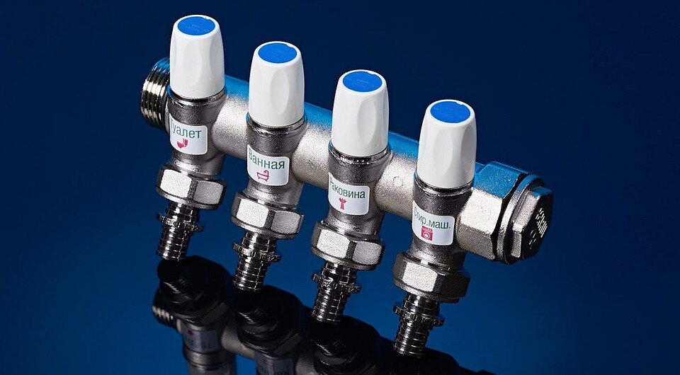 Гораздо дешевле сделать один запорный кран и последовательную разводку к потребителям. Какой вариант практичнее? При проектировании системы водоснабжения в квартире или доме у вас есть два принципиально разных варианта. Последовательное соединение. Ставим на вход запорный кран, от него ведем одну трубу, перед каждым потребителем (смесителем, стиральной машиной, душевой кабиной) добавляем тройник. То есть разветвляем магистраль: одна ветка идет дальше, вторая — к потребителю. Лучевое соединение (гребенкой). После запорного крана устанавливается гребенка (распределительный коллектор) с количеством выходов по числу потребителей. К каждому из них ведет отдельная труба. Какой вариант лучше и почему? Тут нужно будет разобраться в достоинствах и недостатках каждого. Последовательное подключение: плюсы и минусы Главное преимущество такой схемы разводки — минимальный расход трубы. По сути у вас от каждой магистрали (холодной и горячей воды) идет всего одна линия. Например, если самый дальний по