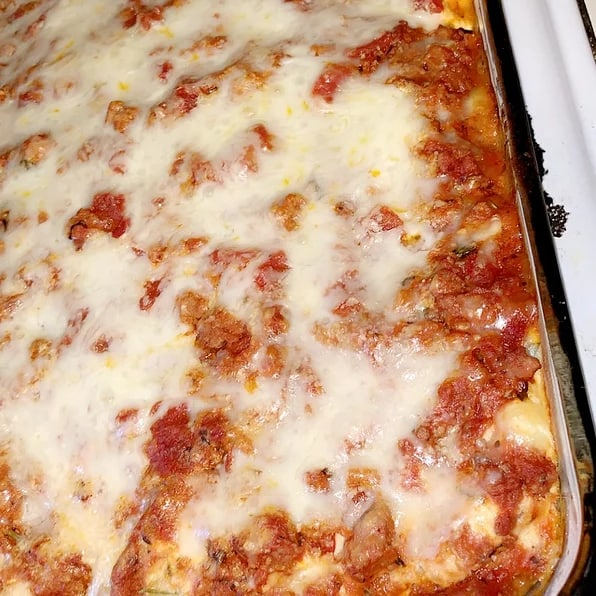 Всем привет! После многих лет корректировки этого рецепта я наконец получил то, что мне нужно. Все в восторге от этой лазаньи такой, какая она есть, хотя я, наверное, никогда не перестану ее настраивать. Направления: Шаг 1 Обжарить колбасу и говяжий фарш с луком и чесноком в большой голландской духовке или тяжелой кастрюле на среднем огне, готовя и помешивая, пока мясо не будет готово, 10–15 минут. Слейте жир и выбросьте его. Вмешайте томатный соус, измельченные помидоры, измельченные помидоры по-итальянски, томатную пасту, базилик, 2 столовые ложки петрушки, коричневый сахар, соль, итальянскую приправу, черный перец, семена фенхеля и 1/2 стакана сыра пармезан в мясную смесь. Доведите до кипения, убавьте огонь до минимума и тушите соус не менее 1 часа (до 6 для лучшего вкуса). Время от времени помешивайте. Шаг 2 Положите лапшу лазаньи в глубокую миску и залейте очень горячей водой из-под крана; дать впитаться 30 минут. Шаг 3 Взбейте яйцо в миске и перемешайте с яйцом сыр рикотта, 2