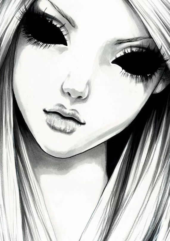 Нарисованная девушка с чёрными глазами - Рисунки на аву