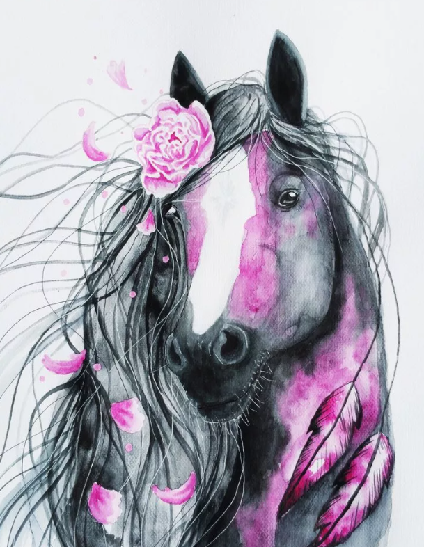 Фото Красивая рисованная лошадь с цветком, by Scandycurll