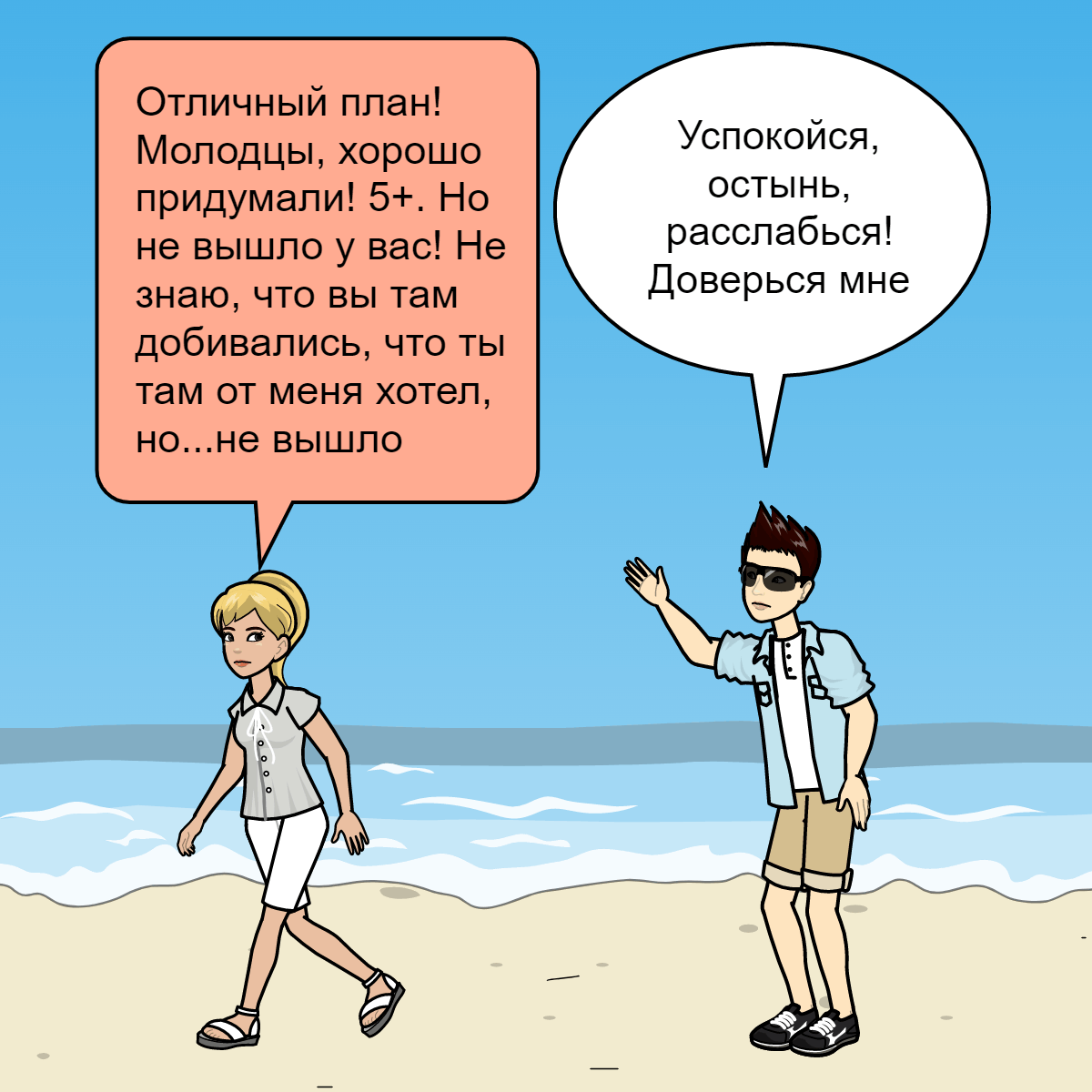 Содержание рассказа. - Эй, ты куда! - Володя быстро пошел за ней. - Искать катер, мне надо обратно! Срочно! Ты не говоришь, как его вызвать, значит найду сама! - Марина - Стой, нету катера и не будет! Никого ты не вызовешь! У нас даже сети нету! - Володя Марина не слышала, она быстро шла вперёд - Отличный план! Молодцы, хорошо придумали! 5+. Но не вышло у вас! Не знаю, что вы там добивались, что ты там от меня хотел, но...не вышло - Марина почти бежала в ту сторону откуда приехала. Володя догнал ее и сильно схватил за талию, а затем развернул к себе лицом - Нет никакого катера! Я уже сказал, катер будет утром. Поэтому успокойся, остынь, расслабься! Доверься мне - Володя аккуратно разжал свои руки, боясь, что Марина снова убежит. Марина чуть испуганно смотрела на него. "Боже, какая же она красивая"- Володя еле сдерживался, чтоб не поцеловать ее. Ее щеки горели румянцем, Толи от жары, Толи от смущения, Толи от злости, что с ней так поступили. Володя будто растворялся в ее глазах. - Д