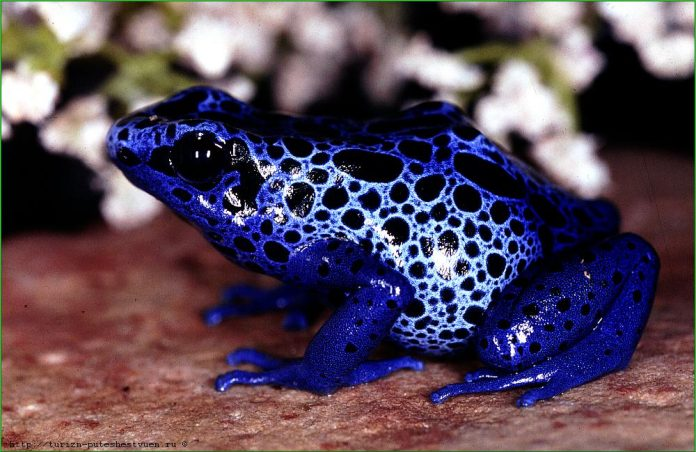Яркий внешний вид подчеркивает ее токсичность. Это ядовитая лягушка, которая может убить обезьяну за 40 секунд