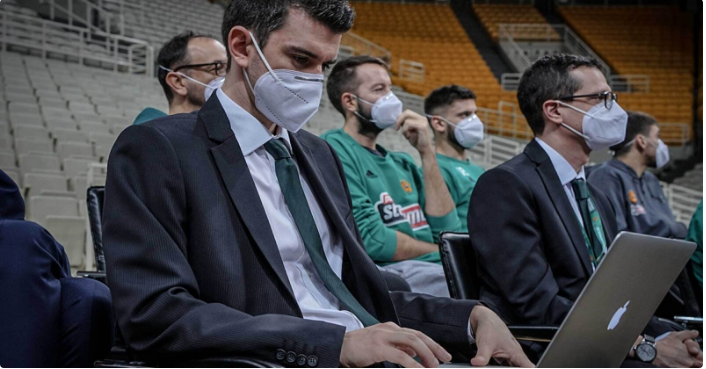 Ассистент и тренер академии Майк Раховицас использует Hudl Sportscode во время живого матча.