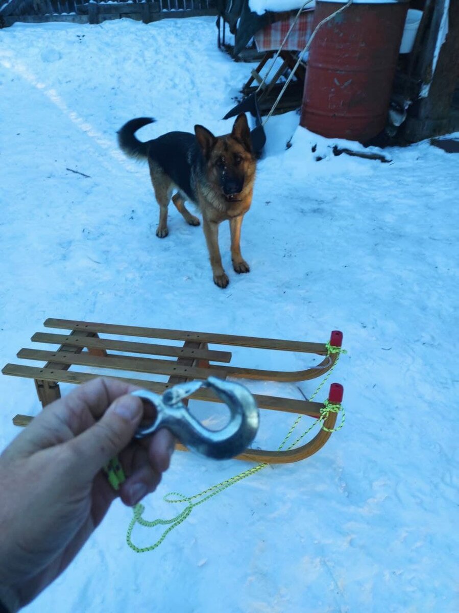 Наш кинолог советовал, чтобы у Верты был хороший костяк и задние лапы формировались не иксом, нужно ее регулярно физически нагружать, например бросать мячик в глубокий снег, чтобы Верта оттуда сама выбиралась. Но, если в прошлом году Красноярск накрыло так, что обалдеть, то в этом году на календаре 3 декабря, а на улице + Поэтому, как вариант нагрузки, мы решили попробовать запрячь Верту в сани. Помню в детстве с какой легкостью тягал меня наш Ризин, и как это было весело! А сама собака, вроде как и не замечала загруженные мною сани. Достал из сарая Лерины санки, непонятно как прикрепил их к шлейке (обязательно использовать шлейку для этих целей, а не ошейник, вы же не хотите задушить пса) Лера усажена, Верта на старте у калитки и не понимает, что кто-то пристегнут к ней. Калитка открылась, Верта рванула вперед, Лера на санках за ней! Цель Верты - разведка соседской территории с отличной горкой на спуске. Полицейский разворот, Лера хохочет, веревка рвется (та самая, что служила верой
