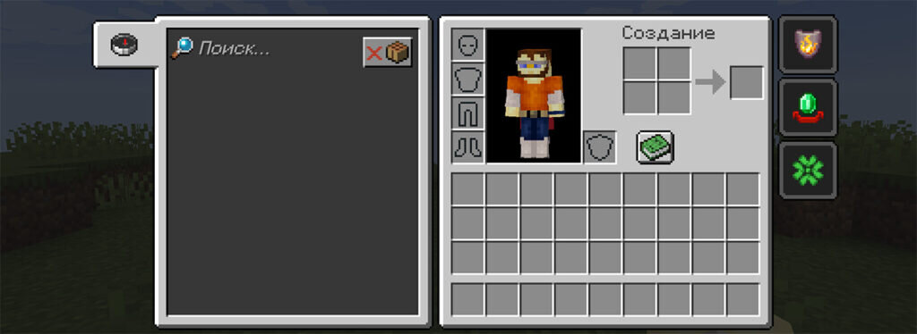 - Когда открыт инвентарь, список эффектов с основного экрана будет скрыт (они будут отображаться справа от инвентаря).