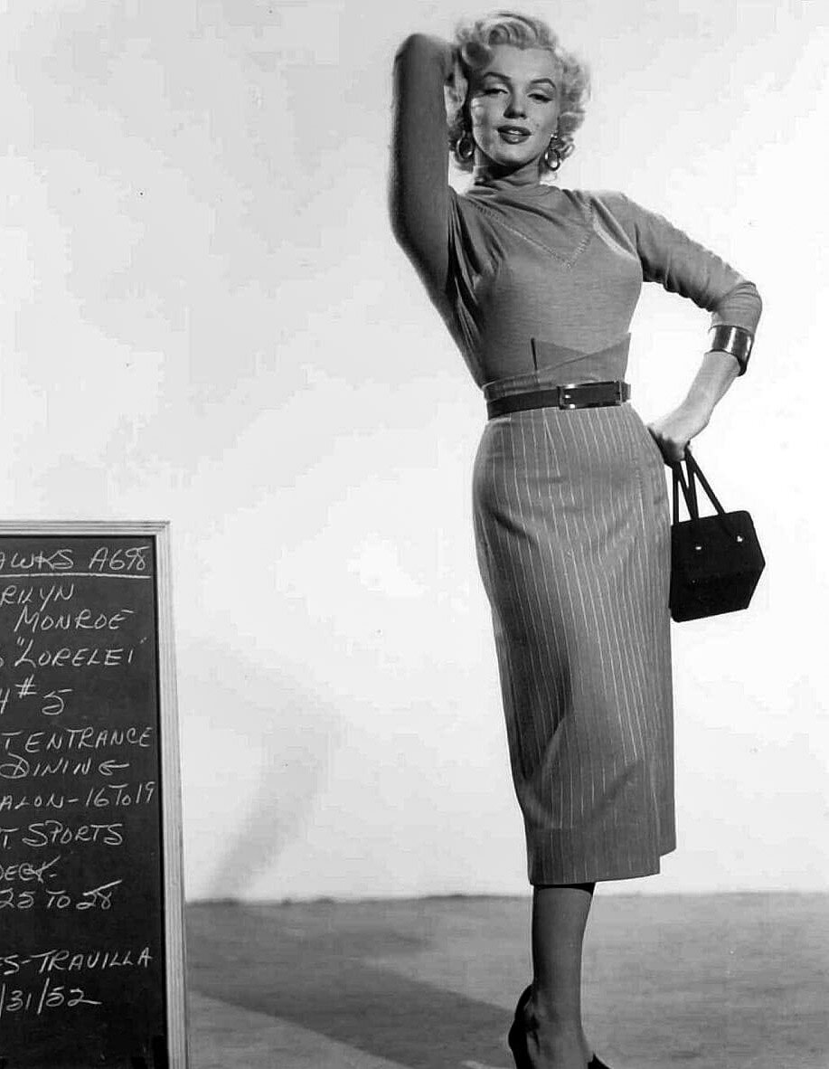 Монро фактически превратила узкую юбку из одежды на каждый день в более нарядную вещь, которую стали считать символом женственности. Этот фасон идеально подчеркивал фигуру песочные часы, а знаменитая походка актрисы делала силуэт еще более соблазнительным.