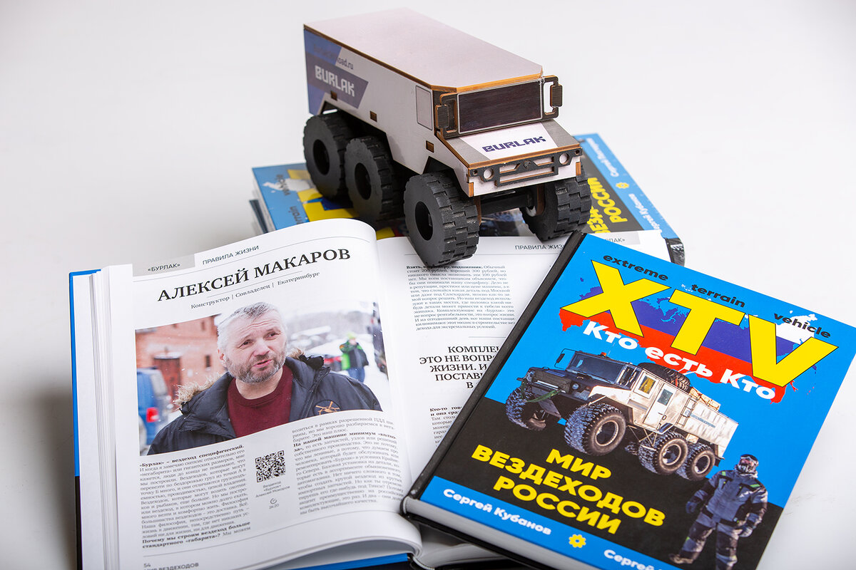 Вышла четвертая книга журналиста и писателя Сергея Кубанова — «Мир вездеходов России». В издании собраны самые известные и оригинальные вездеходы страны. На обложке красуется наш «Бурлак», внутри есть подробный разбор особенностей вездехода и большое интервью с конструктором Алексеем Макаровым. Сборник делится на несколько основных блоков: спецификация, модельный ряд, правила жизни (интервью с конструкторами), прайс-лист, аналитика. По словам автора, он хотел написать честную, нерекламную книгу, таких на российском рынке практически нет: — Я посетил десятки городов, побывал на испытаниях разных вездеходов, встретился с конструкторами. Это было очень важно, потому что вездеход — это в первую очередь люди, которые его производят. Конструкторы, инженеры, механики — именно команда создает качественный и востребованный продукт. Важно было понять, с какой целью создали тот или иной вездеход, в чем особенности техники, почему применяются определенные конструкторские решения. Во время таких по