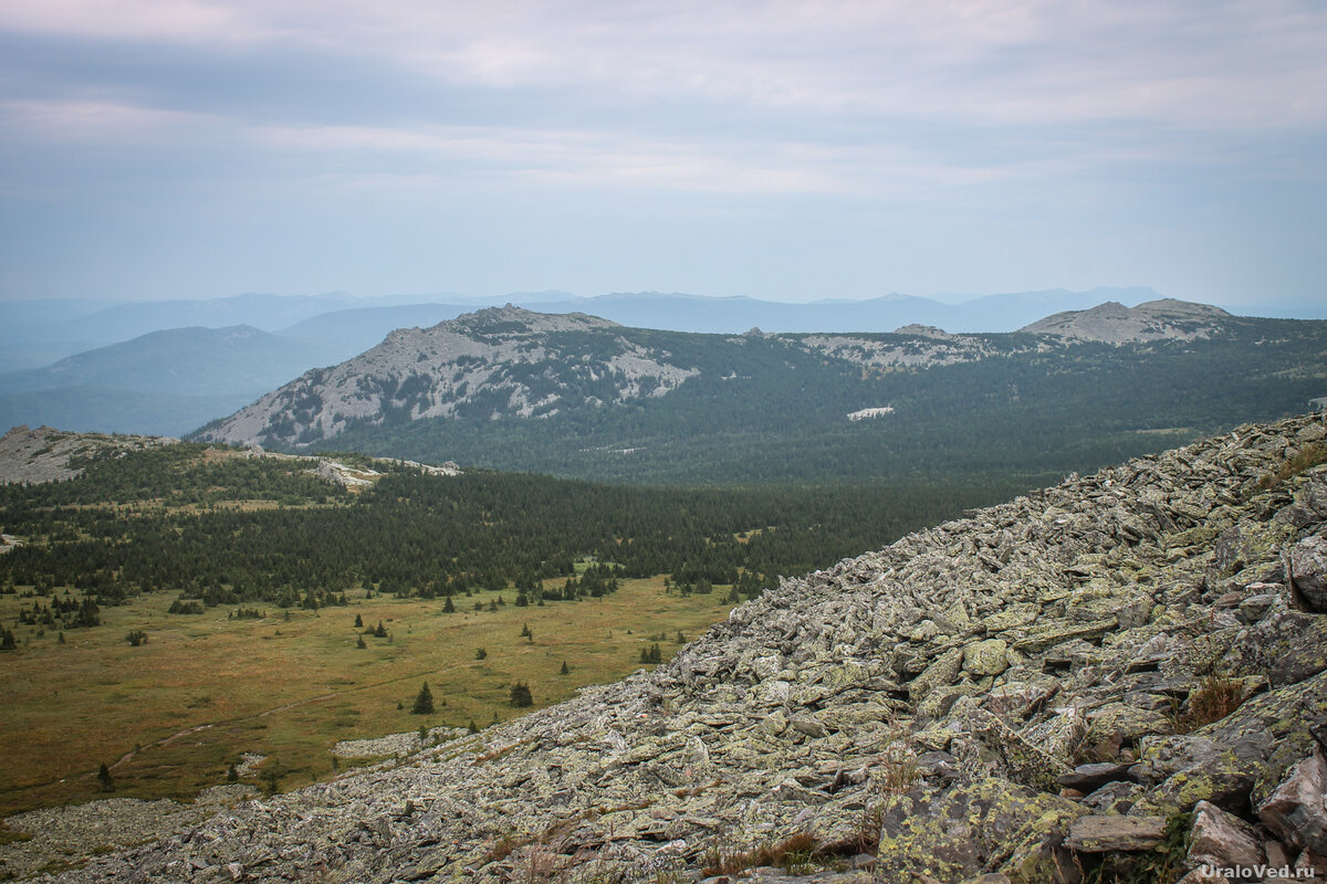 И вот странники добрались до подножия «кабана» Большого Иремеля – горы, полностью покрытой россыпью камней. Камни поросли лишайниками зеленоватого цвета самых причудливых узоров, «точно были обтянуты змеиной кожей». Дальше пошли пешком.