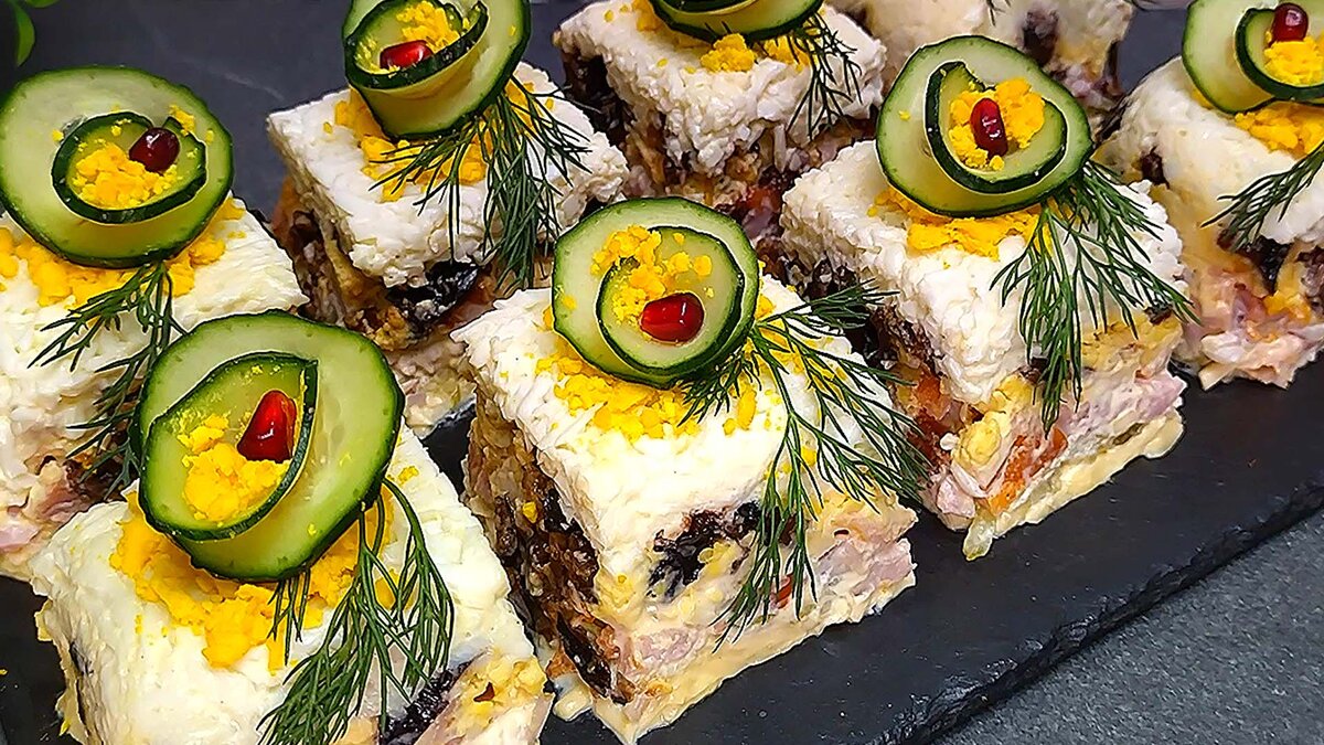 Салат "Восторг" готовлю каждый год: один из лучших салатов на новогодний стол (вкусное сочетание и праздничная подача)