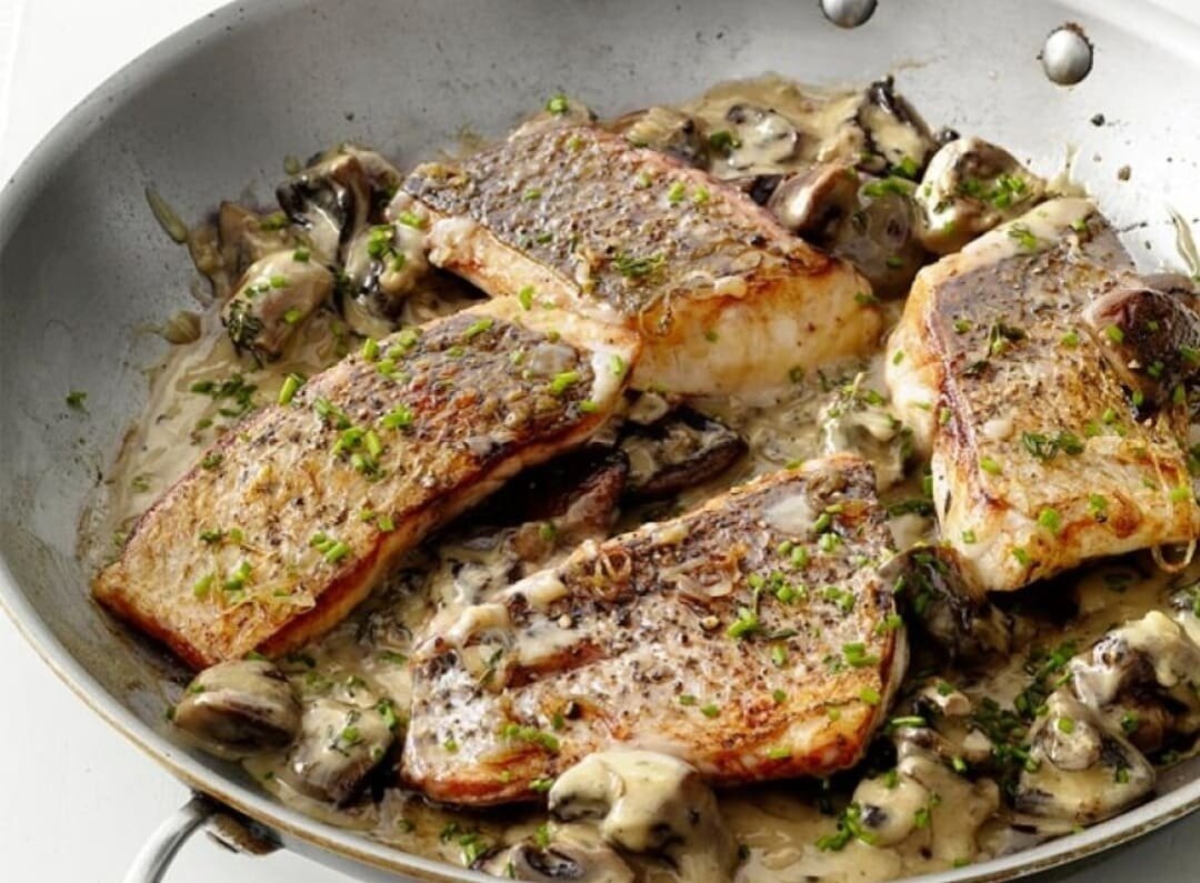 Треска с грибной подливой