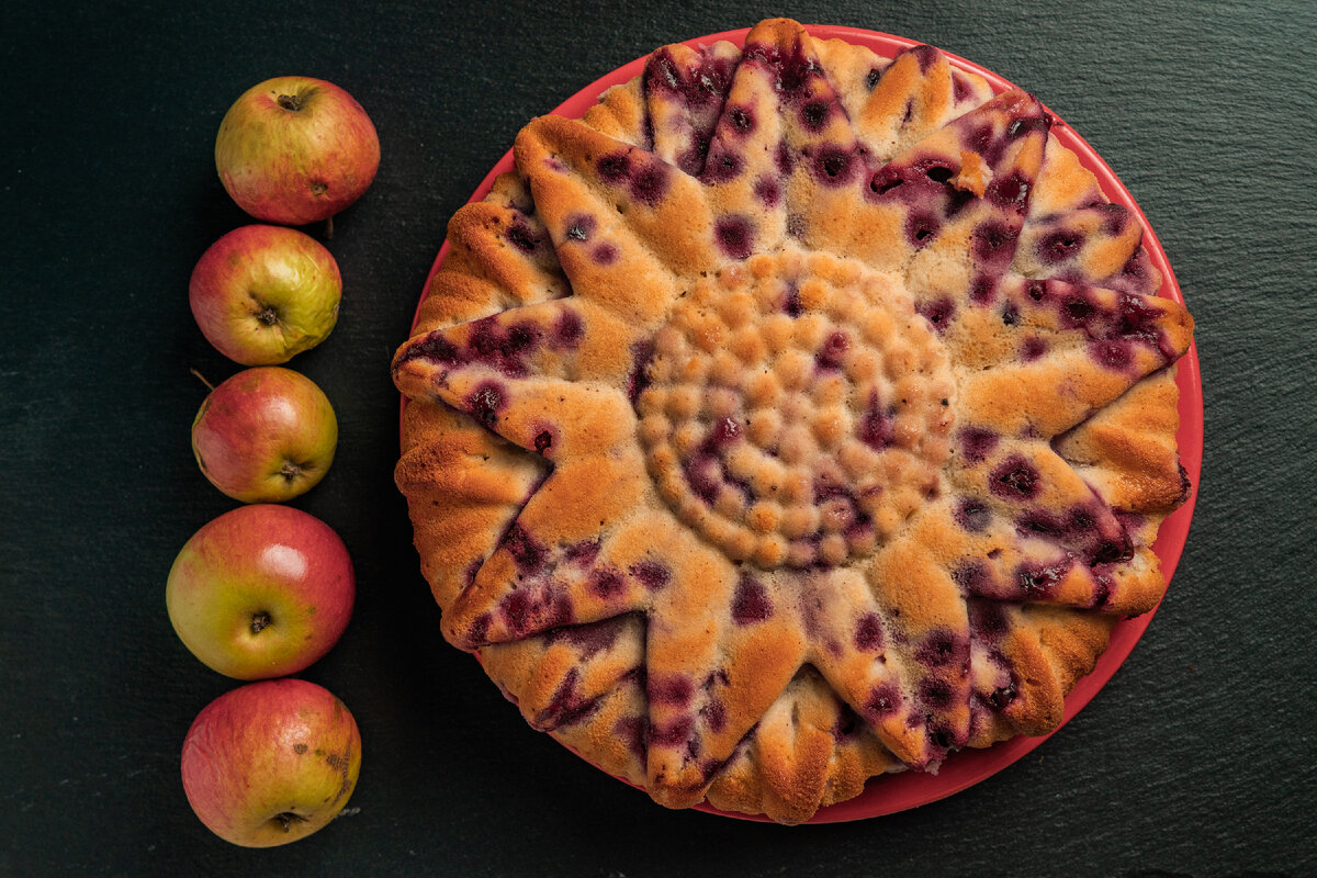 Мука - 250 гр. Сахар – 200 гр. Яйца – 3 шт. Яблоки – 3 шт. Смородина – 100 гр. Разрыхлитель – 1 пакетик. Кефир – 100 гр. Рецепт шарлотки для тех, у кого в морозилке хранится урожай смородины с дачного участка и тех, кто не любит очень сладкое. За счет смородины пирог получается кисло-сладким даже если вы берете сладкие яблоки. Для начала отдельно взбиваем желтки и белки. В желтки добавляем сахар, перемешиваем. Добавляем белки, перемешиваем. Затем идет мука с разрыхлителем и кефир. Все перемешиваем. Режем 3 средних яблока. На дно силиконовой формы выкладываем смородину, заливаем половиной теста, затем кладем яблоки и доливаем остатки смеси. Греем духовку до 180 градусов и ставим туда пирог на 45 минут. Так как в пироге много влаги, его лучше подержать подольше, если есть подозрения, что он сыроват. Друзья, подписывайтесь, ставьте лайк, делитесь с друзьями. Завтра новый рецепт. Пишите в комментарии ваш вариант шарлотки. #шарлотка #шарлотка с яблоками #шарлотка рецепт #пирог #пирог в