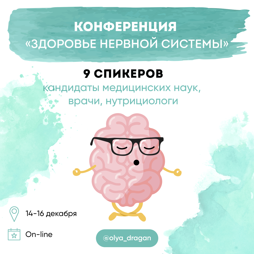 На конференции спикеры сделают обзор основных проблем и заболеваний нервной системы, раскроют причины и механизмы развития заболеваний головного мозга, расскажут об алгоритмах профилактики и реабилитации этих заболеваний с помощью современных технологий питательной и метаболической поддержки с помощью питания и нутрицевтиков. 🔥 Темы: 🧠 Антиэйдж мозга. Семь шагов к вашему супермозгу. 🧠 Программа реабилитации нервной системы после коронавирусной инфекции. Первым делом - начинаем восстанавливать нервы. 🧠 Профилактики инсульта и реабилитация постинсультного состояния. Инсульт - не приговор. 🧠 Старческие мозговые нарушения можно замедлить (старческое слабоумие, болезнь Альцгеймера и прочее). 🧠 Синдром выгорания и синдром хронической усталости. Если мозг устал - накормите его и дайте отдохнуть. 🧠 Поддержка психо-эмоционального развития ребёнка и ускорение развития речи. 🧠 Синдром гиперактивности, нарушение внимания и аутизм у детей. ... и другие темы. Стоимость: 15 $ Запись в директ