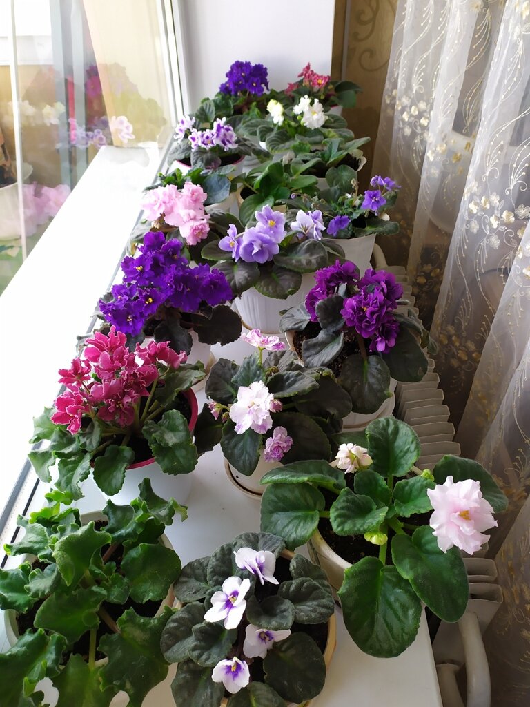 Когда я покупал квартиру, понимал, что заводить животных, птичек и рыбок не буду. Во-первых, не люблю в квартирах собак. Во-вторых, я противник кастрации - стерилизации котов (кошек), а выводить или выпускать его с 9-го этажа довольно неудобно. В-третьих, я часто уезжаю, а всё живое требует кормёжки. То ли дело цветы - полить их можно поручить даже соседям. А поговорить? При желании, почему бы и нет? Они, цветы, слушают лучше котов - не перебивают! Так я стал цветоводом. Сначала я приобрёл несколько лиственных растений для компенсации поглощённого кислорода и заставил подоконник фиалками. Для души. Ну, и чтоб было чем в социальных сетях похвастаться. )) Вот что у меня в итоге получилось. Это весна прошлого года. Сейчас их стало немного больше. Я никогда не думал, что буду выращивать олеандр. Ведь он ассоциировался у меня с побережьем южных морей. Но однажды, наверно летом 2015-го года одна из любимых женщин принесла три малюсеньких побега олеандра. Не знаю, почему не стал фотографиров