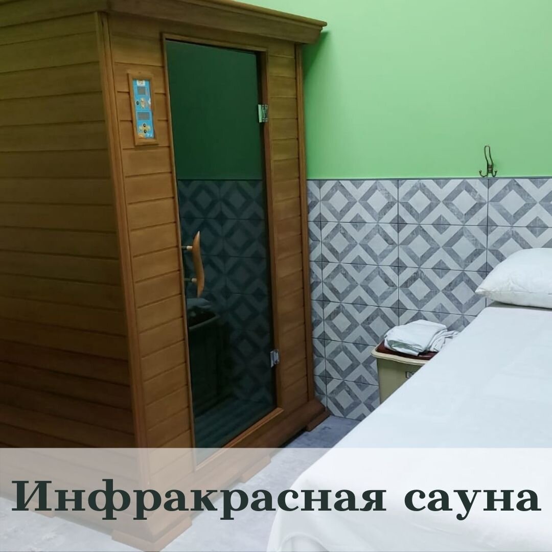 Инфракрасная сауна представляет собой кабину на одного или несколько человек. Основным нагревающим элементом служат инфракрасные пластины, излучающие волны, похожие на тепловые волны организма человека. Именно по этой причине организм воспринимает их легко, не препятствуя проникновению. Температура в инфракрасной сауне не поднимается выше 60 С, при этом потоотделение выше, чем в обычной или финской бане. За счет низкого сопротивления лучам, прогрев организма происходит с больше эффективностью. Во время сеанса температура тела повышается до 38.5 С, это дает противовирусный и противобактериальный эффект. Возможность простудных заболеваний снижается к нулю. Усиливаются метаболические процессы, укрепляется иммунитет, снижается вес, эффективно выводятся шлаки и токсины. Инфракрасное излучение является одним из самых безопасных для человека, по сравнению с рентгеновским или даже ультрафиолетовым. Воздействие инфракрасного излучения активизирует потенциальную энергию клеток организма, стимули