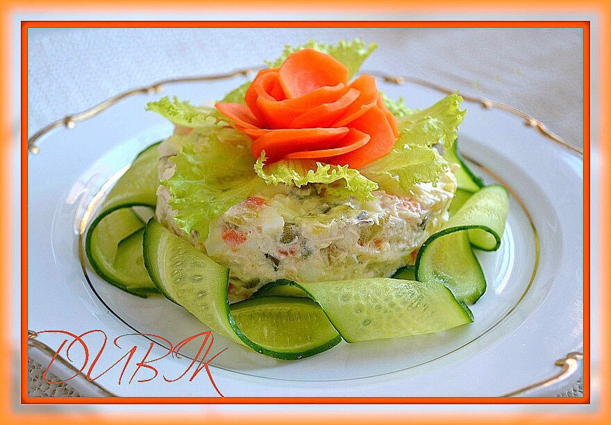 Я же вспомнила, как бабуля угощала гостей этим салатом, но лук всегда заменяла яблочком. Вот и решила приготовить салат из моего детства. Способ приготовления Курицу порезать небольшими кусочками.