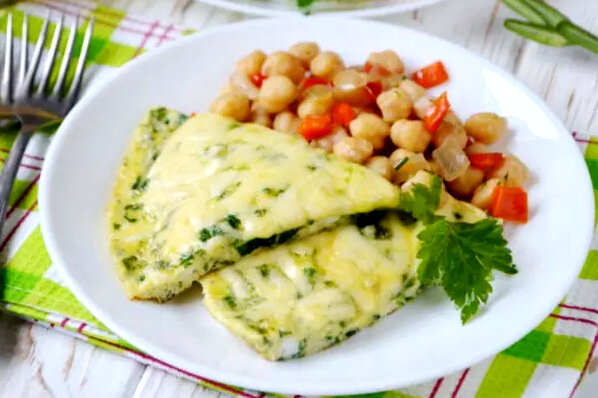 Ингредиенты: Процесс приготовления: 1. Натрите кусочек сыра на крупной терке. 2. Яйца соедините с щепоткой соли, перца, сливками и шпинатом. 3. Если шпинат свежий, порежьте его мелко, если замороженный, то измельчите его удобным для вас способом. Я достала его из морозилки за час до готовки, он успел размягчиться. Омлетную массу хорошо взболтайте вилочкой. 4. Растительное масло разогрейте на сковороде, вылейте омлетную массу, жарьте на медленном огне. 5. Когда омлет будет почти готов, посыпьте его тертым сыром и подержите еще минутку на огне, потом снимите. 6. Порежьте на порционные кусочки и можно кушать. Приятного аппетита.