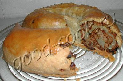 Я делала вертуты с мясной начинкой. Получился очень вкусный пирог с рассыпчатым тестом и, что не маловажно, очень красивый и оригинальный.