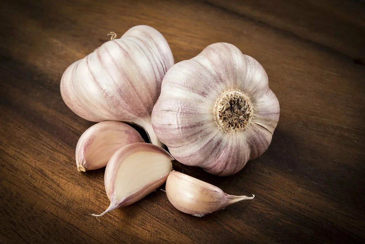 В медицине разных народов чеснок используется порядка четырёх тысяч лет. Зубцы чеснока находят в гробницах древнеегипетских фараонов. Возможно, что и для лечения насморка египтяне использовали чеснок. Уже давно антибактериальные свойства чеснока хорошо известны и документированы. Своим свойствам чеснок обязан веществу «аллицин». Он является органическим сульфидом с резким запахом, образующийся во время жевания свежего чеснока, а также, когда его ломают и режут. Но часто насморк обусловлен вирусами, а не бактериями. Однако результаты одного исследования приводят к мнению, что «содержащие аллицин препараты, в большинстве случаев могут предотвратить развитие риновирусной инфекции». Было проведено исследование, в котором 146 испытуемым было предписано, в течение 12 недель принимать препараты содержащие аллицин или плацебо. Для многих аллицин оказался очень эффективным средством защиты от обычного насморка, даже можно сказать ,что для большинства испытуемых. А так же, у тех, кто употр