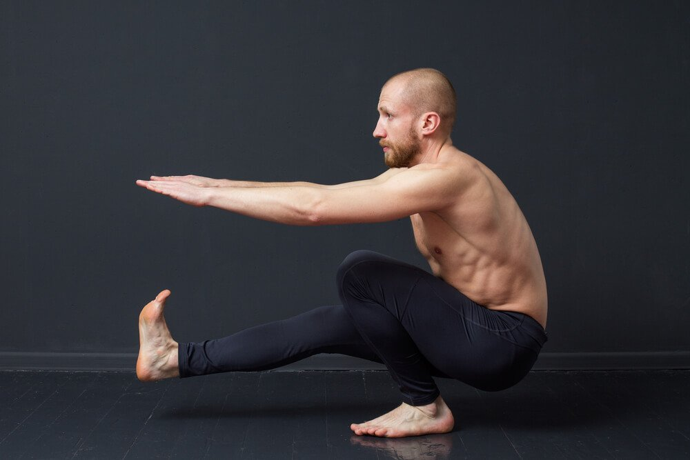 ◾️ Медленно и подконтрольно приседайте на опорной ноге, одновременно держась за носок стопы второй ноги.