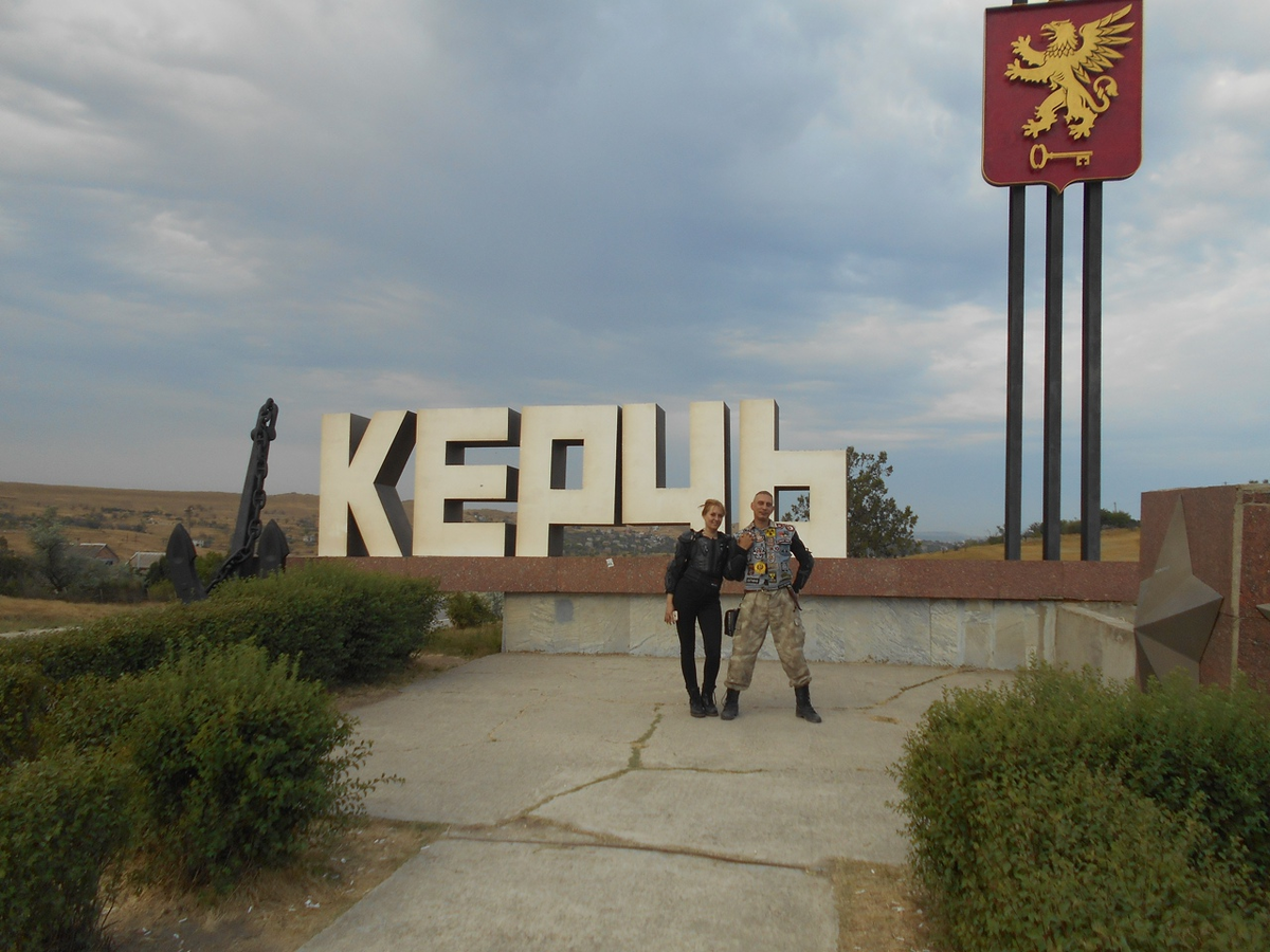 Заснули хорошо, выспались знатно. За ночь тучи рассеялись, было тепло и солнечно. Ресторанный ужин давно провалился и растворился в глубинах организмов. Попили чаю и пошли позавтракать в кафе, которое было рядом с домом, но вчера не работало. Зашли. Меню вселяло оптимизм. Убивало оптимизм то, что столы были накрыты белыми скатертями и сдвинуты вместе. Расставлена парадная сервировка. Важная тётенька строго сказала: спецобслуживание! Нас вежливо попросили на выход. Забегая вперёд скажу, что спецобслуживание у них было все три дня, которые мы были в Керчи. Так мы там и не поели. Включив логику я сказавл, что раз есть заводы--то должны быть и заводские столовые, и не ошибся. В десяти минутах ходьбы была типичная СССР-овская столовка. Цены были лояльными. Меню разнообразием не блистало, но порцайки были большие, и приготовлено вкусно. Подкрепились и пошли дальше. Юг чувствовался: вокруг цвели диковинные цветы и кустики, поминутно фоткались. Правда, дороги были как после бомбёжки, ну да это мелочи. На одном из поворотов я увидел небольшую дикую вишню, покрытую ягодами. Ах, ты, Боже мой!!! Как всегда, при виде вишен свело скулы от предвкушения. Стало фиолетово на действительность, и те вишни я начал отчаянно поедать. В наших местностях ещё только завязывались ягодки, а тут они уже лопались от перезрелости. Жена, подождав немного, деликатно оттащила меня за штаны, показав, что вишен здесь--как в Калуге лип и ясеней. Растут повсюду, и никто их не ест! Решили, что успею ещё--раз тут люди своего счастья не понимают. Второй неожиданностью были кусты тутовника. Весь асфальт был в громадных фиолетовых пятнах...Перезрелые ягоды сыпались с дождём--никто их не ел!!! Странные люди! --решили мы. С тем и дошли до горы--это оказалась гора Митридат. Разумеется, залезли--любуясь панорамами: с каждой площадки лестницы виды были круче и круче. А на самой макушке стояла скамейка с цветными буквами сзади : крымский мост. Если на неё сесть, то открывался и впрямь вид на мост, который отсюда был размером в пару сантиметров. Ясен пень--сфотались. Где-то разжились брошюркой "что посмотреть", и решили на досуге поизучать. Гора понравилась--помимо очень мощного воинского монумента по склонам было много археологических древностей. Облазали всё, что увидели. Отдых начинал нравиться.