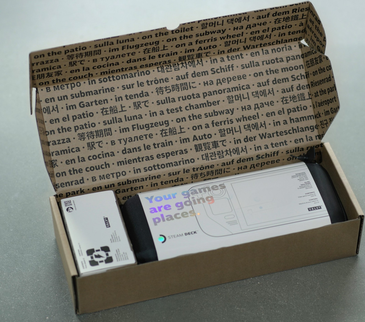 3 декабря 2021 года Valve показала упаковку Steam Deck — там по-русски написано, что в нее можно играть «в метро», «на даче», «на дереве» и «в туалете».
