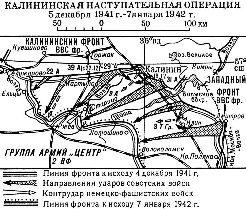 Частью этого наступления стала Ржевско-Вяземская операция (8 января – 20 апреля 1942 года). Охватывающими ударами армий правого крыла Калининского фронта под командованием И. С. Конева из района северо-западнее Ржева на Сычёвку, Вязьму и войск левого крыла Западного фронта под командованием Г. К. Жукова из района Калуги в направлении Юхнова, Вязи с одновременным наступлением остальных армий Западного фронта на Сычёвку и Гжатск окружить, расчленить и уничтожить основные силы группы армий «Центр» в районе Ржева, Вязьмы, Юхнова, Гжатска.