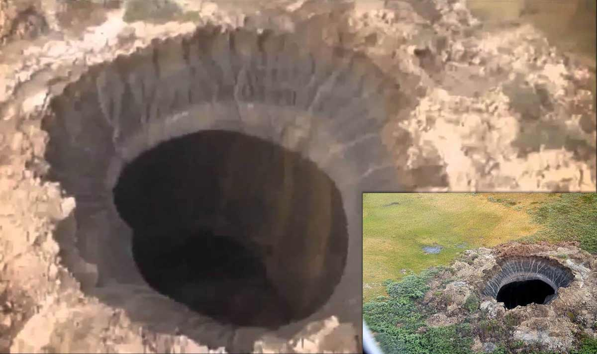В в июне 2014 года российскими нефтяниками случайно была обнаружена на Ямале гигантская воронка в земле