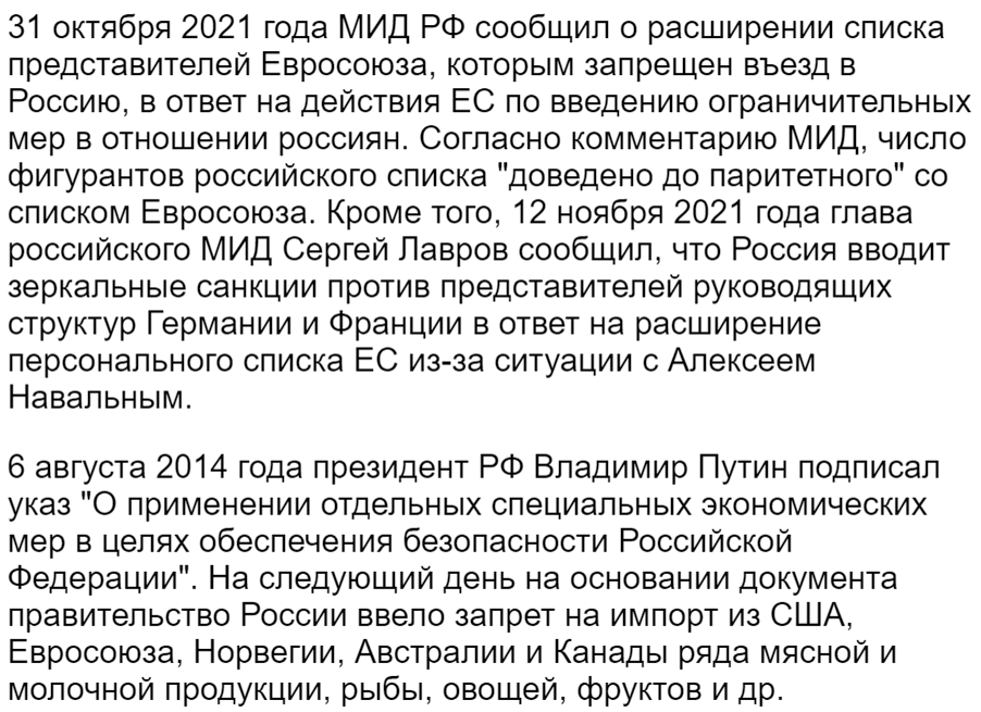 Здравствуйте, дорогие читатели моего канала! 21 ноября 2021 года президент России Владимир Путин подписал указ о продлении до 31 декабря 2022 года отдельных специальных экономических мер против стран, установивших санкции в отношении РФ. Правительству поручено обеспечить осуществление мер по реализации этого указа и при необходимости внести предложения об изменении срока действия указанных контрсанкций. Читать далее в источнике >>>