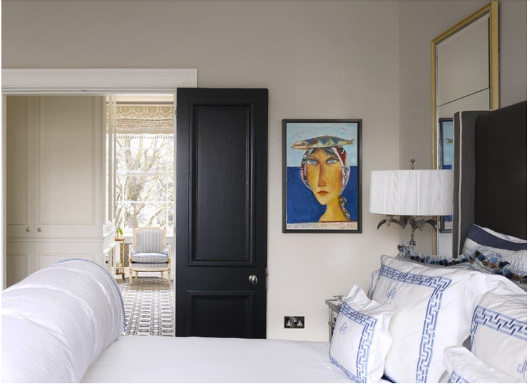 Двустворчатая дверь из темного дерева в спальне