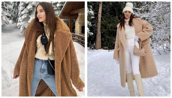 Меховые пальто с поясом — отличный вариант верхней одежды для зимних холодов. Стилисты предлагают нам дополнять их базовыми джинсами, объемными кроссовками и шерстяными водолазками.