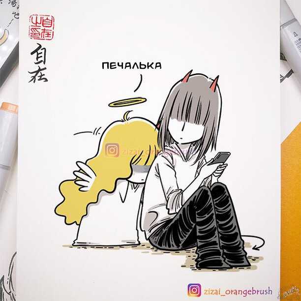 Милые комиксы о любви Ангелочка и Демона: тройная атака нежности