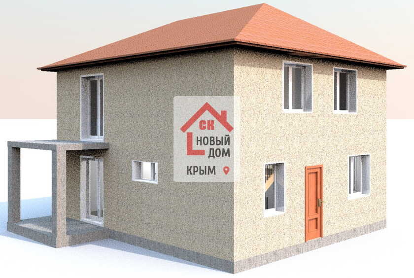 Проект двухэтажного дома площадью 143 м.кв 4 спальни, пятно застройки 8 на 9 метров. Цена строительства из блоков газобетона 300 мм. Фундамент - утепленная монолитная плита. Кровля - четырехскатная металлочерепица. Комплектация строительства теплый контур - отделка фасада фактурная штукатурка, окна, входная дверь, железобетонная лестница на второй этаж. СК Новый дом - строим дома с 2009 года в Севастополе и Крыму из ракушечника, газобетона, СИП панелей и каркасные. Свое производство СИП и камня ППСБ.