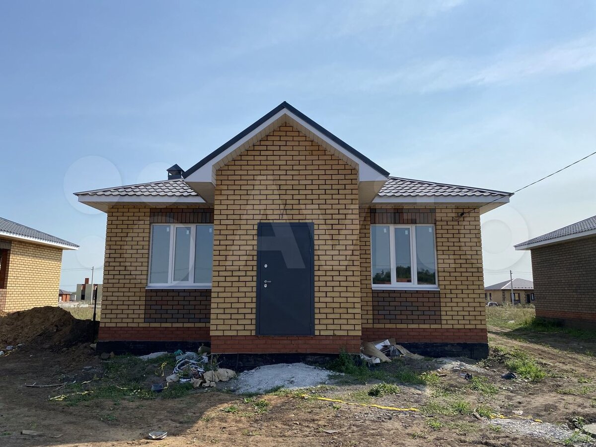 Еще один вариант планировки одноэтажного дома площадью до 100кв.м. с тремя спальнями и совмещенными гостиной и кухней.