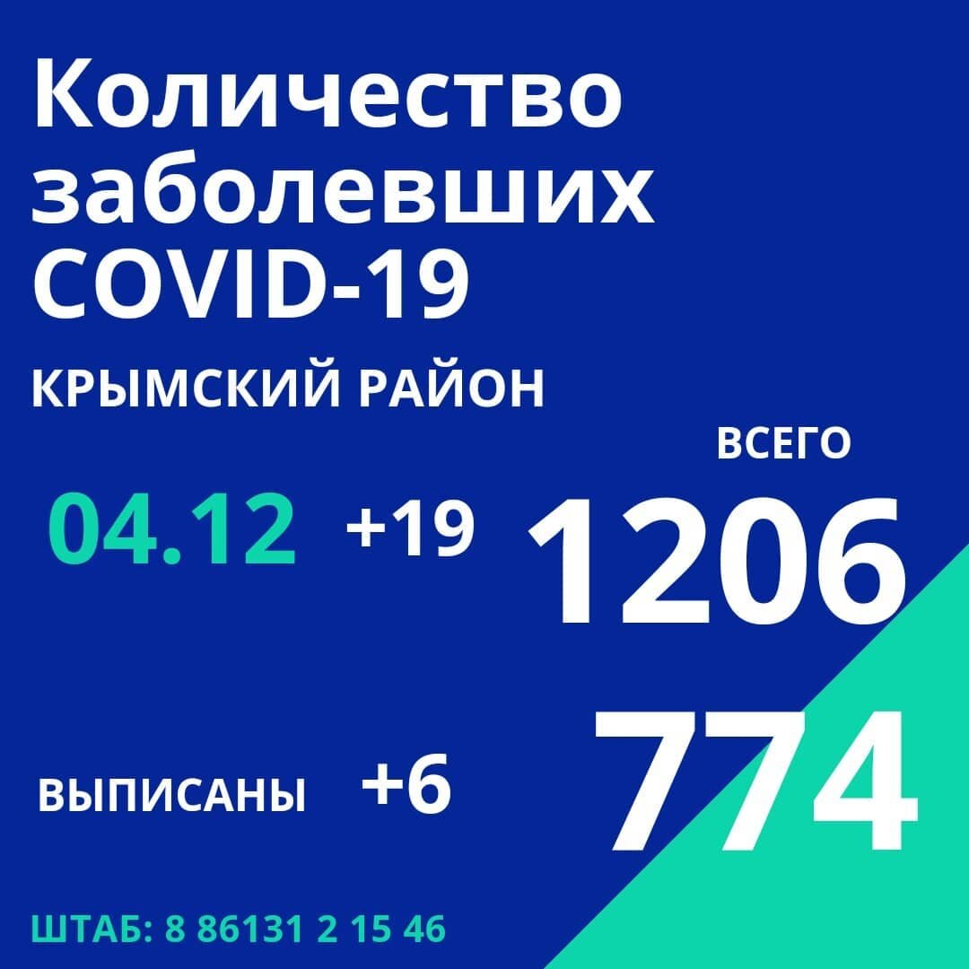 4 декабря по информации оперативного штаба Краснодарского края в Крымском районе 19 новых случаев заражения коронавирусной инфекцией.⠀