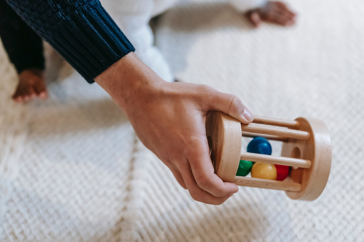 Не всегда молодые родители до конца могут разобраться какие именно нужны игрушки малышу. А первые месяцы их требуется не так много, ведь малыш большую часть времени после рождения спит. Проявлять интерес к игрушкам малыш начнет немного позже. В первый месяц новорождённый ребёнок адаптируется к новой жизни и поэтому беспокоить его не стоит. Он набирается сил после рождения и ему в это время не до игрушек. В один месяц ребёнок начинает смотреть по сторонам и ненадолго фиксировать взгляд на предмете. Ближе к одному месяцу можно показать погремушку, немного погреметь ею. Не переутомляйте малыша, поочерёдно показывая ему разные игрушки. Он может растеряться и интереса это не вызовет. Какие игрушки купить. Нужными и интересными игрушками для грудничка станут погремушки и музыкальный мобиль на кроватку. Дополнительно можно приобрести мягкие кубики и чёрно-белые картинки. В дальнейшем, не менее важным элементом развития, станет развивающий игровой коврик с дугами. Погремушки. Самая первая и