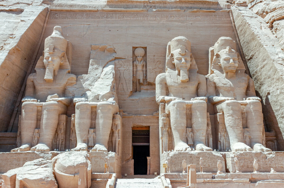 Абу-Симбел ориентирован на восход солнца. Сначала солнечные лучи проникают в первый зал, потом во второй и т.д. А два раза в год лучи солнца освещают статуи Рамзеса, Ра и Амона.