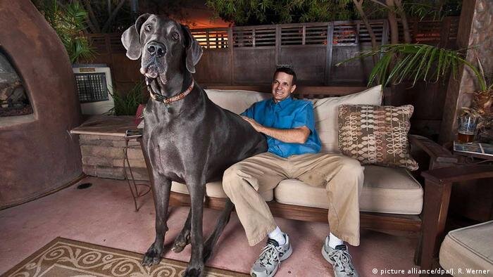 Немецкий дог Этот дог был внесен в 2010 году в Книгу рекордов Гиннесса как самая большая собака в мире. Его вес на тот момент составлял 111 килограммов. . Американский эскимосский шпиц Когда "немецкий шпиц" был привезен в Америку, а было это сразу после окончания Первой мировой войны, его переименовали в "американского шпица", поскольку в те времена в Штатах были распространены антинемецкие чувства. С тех пор порода претерпела изменения. Кинологи разных организаций до сих пор не пришли к единому мнению: считать породу, проживающую в США, "немецкой" или "американской". . Немецкий боксер В 1895 году в Мюнхене представили новую породу, получившуюся в результате многолетнего скрещивания бульдогов и мастифов. Кинологи до сих пор не могут ответить на вопрос: почему эту собаку назвали именно "боксером"? . Такса Название охотничьей породы Dachshund или Dackel (такса) происходит от слов Dachs (барсук) и Hund (собака), потому что таксы использовались для поиска и охоты на барсуков и других норны