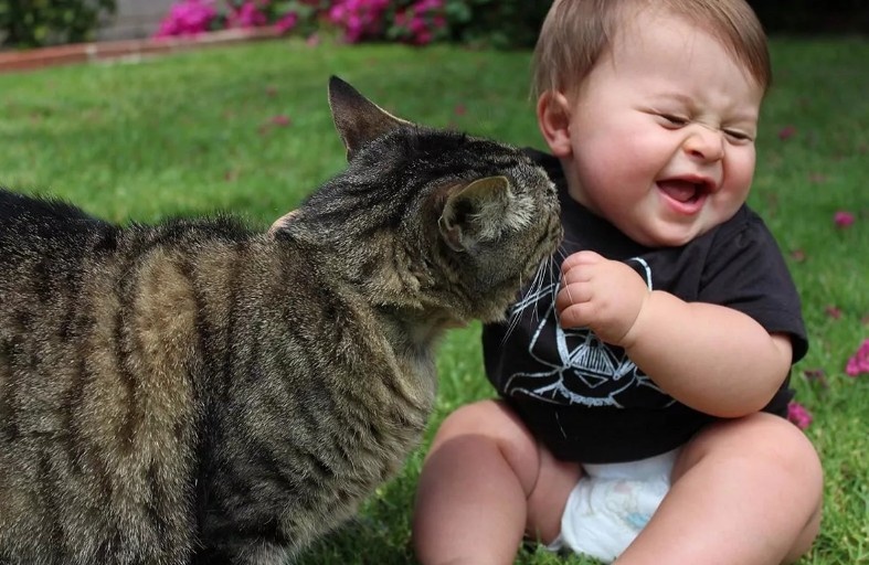 Ребенок играет с кошкой
