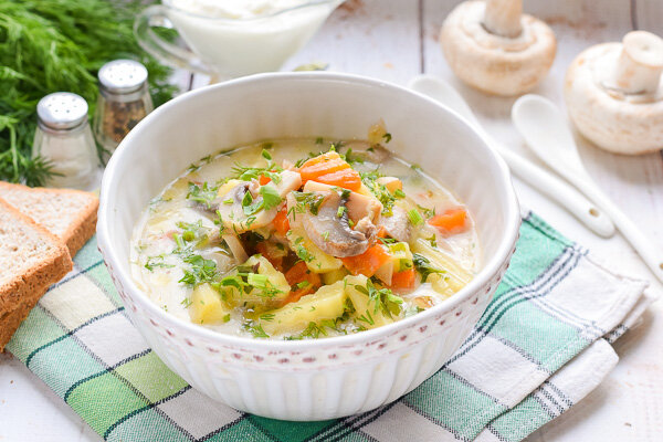 Предлагаем вам рецепт приготовления очень вкусного и ароматного сырного супа с шампиньонами, картошкой, морковью и плавленным сыром. Если хотите приготовить такой супчик для своих близких - изучите рецепт на нашем сайте и готовьте с удовольствием: Сырный суп с шампиньонами Источник: https://kopilka-kulinara.ru/supy/syrnie_supy/syrnyj-sup-s-shampinonami/#recipe_title