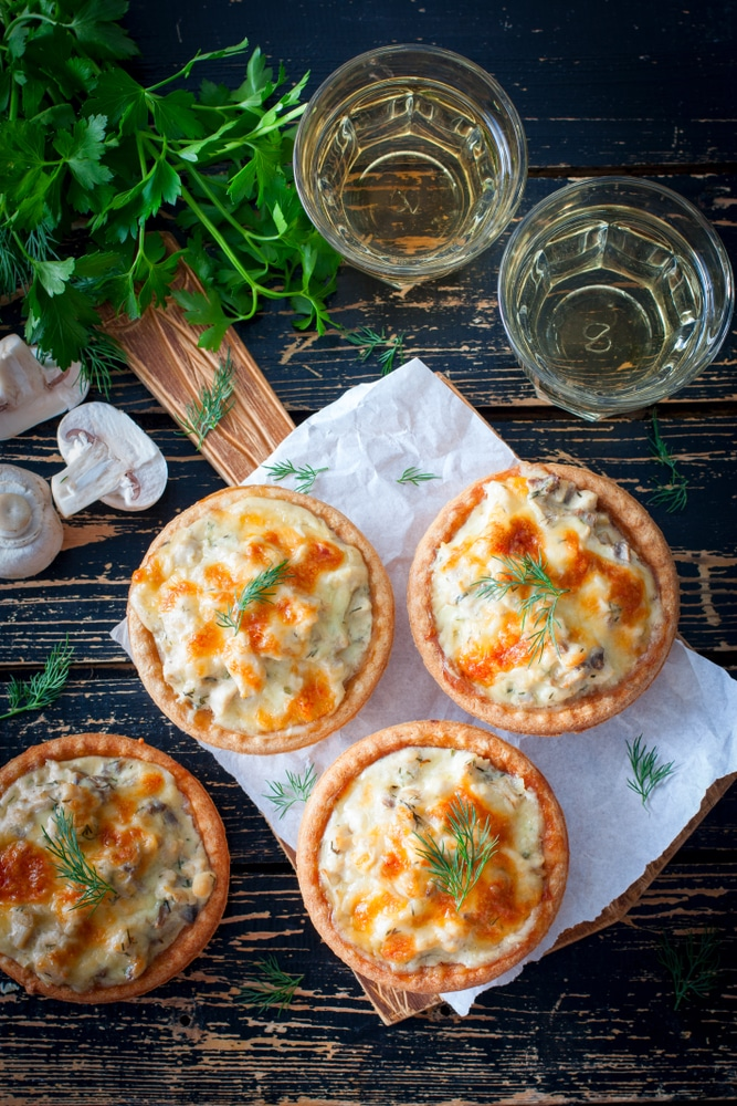 Сочетание курицы с сыром и грибами — всегда в выигрыше. А если подать это блюдо в тарталетках — это еще и очень празднично. Жульен с курицей и грибами под сырной шапкой — французское национальное блюдо. Сытное, вкусное, с оригинальной подачей всегда пользуется популярностью у гостей. Ингредиенты Куриное филе — 150 гр. Грибы шампиньоны — 150 гр. Масло растительное — для жарки Лук репчатый — 1 шт. Сыр твердых сортов — 100 гр. Сметана — 2 ст.л. Зелень укропа — несколько веточек Соль — по вкусу Перец черный молотый — по вкусу Тарталетки — 1 упаковка Пошаговый рецепт ШАГ №1 Курицу промыть, обсушить бумажным полотенцем и нарезать мелкими кусочками. ШАГ №2 Разогреть сковороду, налить растительное масло. ШАГ №3 Выложить на сковороду курицу и лук. ШАГ №4 Обжарить, периодически помешивая. ШАГ №5 Грибы промыть и обсушить кухонным полотенцем. Нарезать мелкими кубиками и тоже отправить в сковороду ШАГ №6 Посолить, поперчить. ШАГ № 7 В полу-готовое блюдо добавляем сметану, мелко нарезанный укро