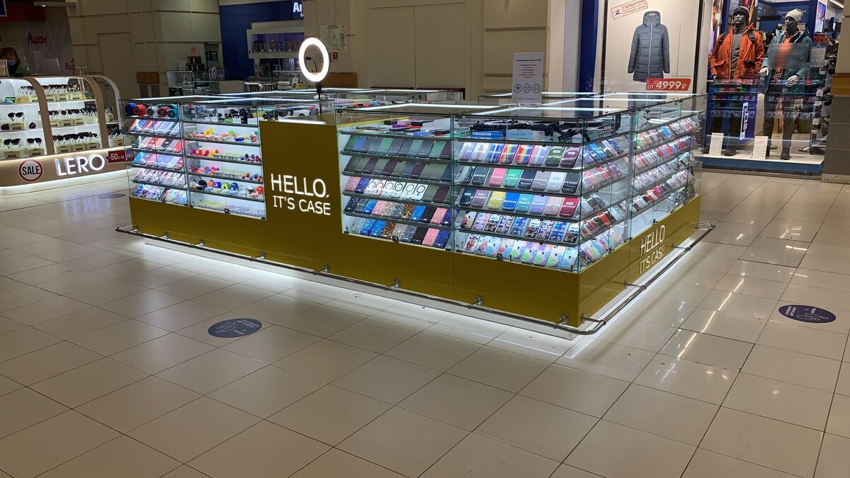 Торговый островок выполнен по техническому заданию заказчика. Место расположения — центральная аллея крупного торгового центра Казани (Парк хаус). Индивидуальный проект, соблюдение всех требований арендодателя и пожеланий клиента. Главная задача состояла в создании максимально вместительного островка. Во-первых, чтобы сэкономить на дорогой арендной плате в ТЦ. А, во-вторых, чтобы разместить как можно больше товара на витринах, ярких оригинальных аксессуаров для смартфонов и планшетов. На демонстрацию самого эффектного ассортимента сделана основная ставка, поскольку подобные покупки часто совершаются импульсивно — увидел красивую вещь, купил. Такой яркий островок в полном мере выполняет самую важную свою функцию — продающую, притягивает внимание посетителей, которые гуляют по торговому центру. Проект выполнен полностью «под ключ» — производство, доставка, монтаж, электромонтажные работы. Подсветка витрин, полок, светодиодная лента по периметру, брендирование. Используем прак