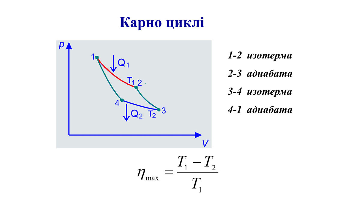 Теплота создает механическую работу только при тепловом «перепаде», то есть наличии разности температур. Этой разностью температур определяется коэффициент полезного действия тепловых машин. Поль Клапейрон в 1834 году развил мысли Карно и ввел очень ценный в термодинамических исследованиях графический метод. В 1850 году вышла первая работа Рудольфа Клаузиуса (1822–1888) «О движущей силе теплоты», в которой вновь после Карно и Клапейрона был поставлен вопрос об условиях превращения тепла в работу. Принцип сохранения энергии, требуя только количественного равенства, никаких условий для качественного превращения энергий не налагает. В этой работе Клаузиус разбирает теорию Карно с новой точки зрения, с точки зрения механической теории тепла. Работа Карно была незадолго перед этим воскрешена из праха забвения Уильямом Томсоном (Лорд Кельвин) (1824–1907). «Томсон признает, — пишет в своей книге „История физики“ П.С.Кудрявцев, — что взгляд Карно, что теплота в машинах только перераспределяет