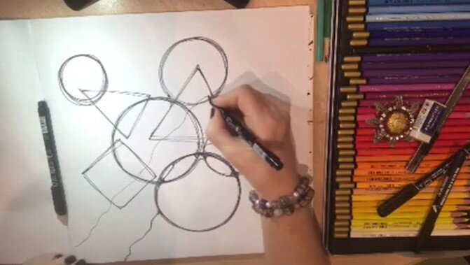 Сегодня мы продолжим настраиваться на многозадачность и разбираться как справиться с ситуацией маленькими и приятными шагами. Приветствую вас на канале “Мастерская исполнения желаний, нейрографика. Лана Сапир”, я Лана Лагинская сертифицированный инструктор нейрографики. В первой части мы проводили “Диагностику ситуации”. Теперь приступаем к нахождению блоков, которые мне мешают приступить к выполнению намеченных планов. Я начинаю с растворения первого треугольника (провожу нейрографические линии) и размышляю над своим рисунком. Я вижу, что оба дела одинаковые. И даже создание украшений стало более значимое, чем основная задача, значит я зря боюсь. Эта задача становится не такая уж и страшная, просто надо идти и делать. Вдобавок, оно принесёт мне столько же удовольствия, как и изготовление этих украшений. Скругляю и сопрягаю фигуры дел и понимаю, что за украшения я просто никак не могу взяться, мне то одного не хватает, то другого не хватает. Человек уже месяц ждёт, а я всё никак не мог
