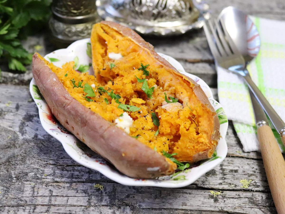 К сожалению, батат пока еще не частый гость на наших столах. Но попробовав, вы обязательно его полюбите. Этот овощ хорошо усваивается и насыщает, поэтому его часто используют в своём рационе приверженцы здорового питания. Сегодня я предлагаю быстрый способ приготовления батата в микроволновке. Это очень вкусно! Ккал: 82.96, время приготовления: 5 мин., порций: 1 #Вторые блюда #Микроволновка #Европейская #Блюдо ПП #Гарнир #На скорую руку #На ужин #Постное блюдо #Просто приготовить Ингредиенты Приготовление: 1. Подготовить продукты. Нужен сам батат и микроволновка. 2. Батат хорошо помыть водой, можно использовать щетку. 3. Обмотать батат смоченными в воде бумажным полотенцем. 4. Поместить батат в посуду, пригодную для микроволновки и накрыть специальной крышкой для СВЧ или, как я стеклянной тарелкой. 5. Включить микроволновку на 4 минуты при мощности 800 Вт или на 5 минут при мощности 600 Вт. Попробуйте готовность овоща, проколов ножом или вилкой. Если есть сомнения, то включите