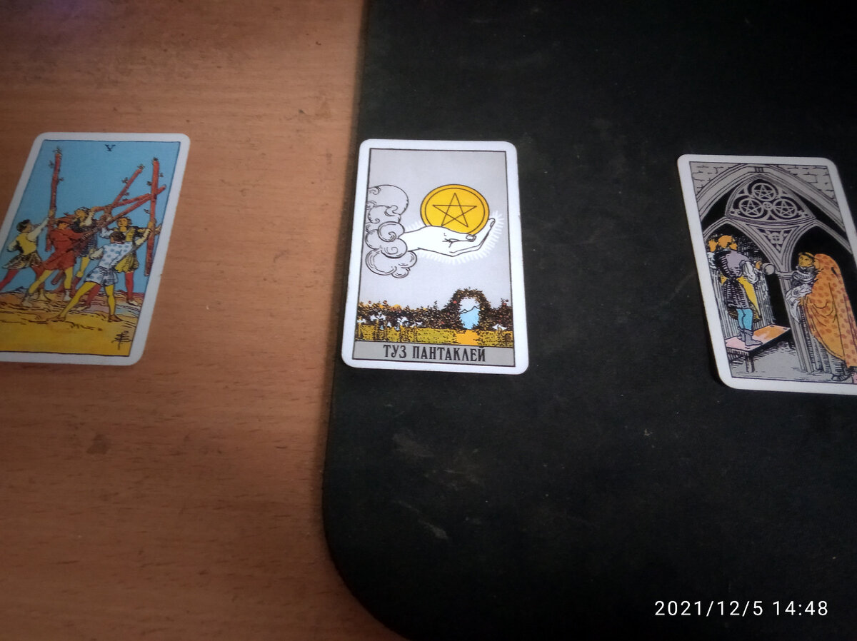 Вы достали из колоды 5 Жезлов на отношения ; Значить так, хотели мира готовьтесь к войне. За свою любовь вам придется бороться с соперниками или соперницами , строить отношения без проблем вам тоже не получится, будете постоянно выяснять отношения друг с другом, ну это сейчас так. Туз Пентаклей который вы достали на развитие отношений ,сулит вам значительное улучшение ваших отношений в ближайшее время, вам будет хорошо друг с другом , после бурь всегда светит солнце . На будущее вы достали тройку Пентаклей - Вероятно вы подали к заявление в ЗАГС или просто будете жить гражданским браком. Я вижу что ваши отношения закончаться хорошо. Может быть простое сожительство, или заключение брачного договора.