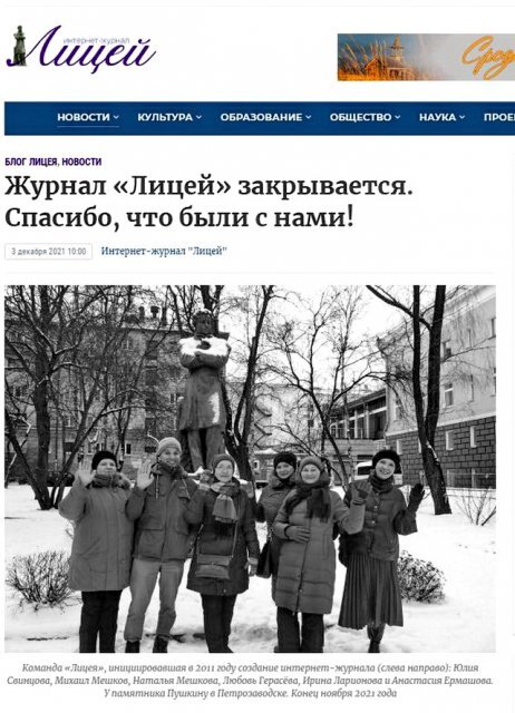 Журналисты известного карельского издания «Лицей» объявили о закрытии журнала