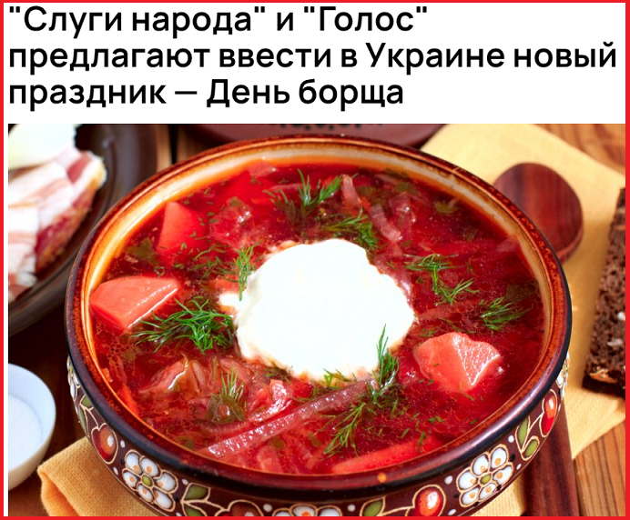 Вообще-то День борща, можно сказать, всемирный, существует. Отмечают его 10 ноября. И что же в этот замечательный день люди делают? Понятное дело, борщ варят, фестивали разные кулинарные устраивают, радуются и веселятся всяк на свой лад в разных странах мира. Только для настоящего украинского борща одного такого международного дня мало. Надобно чтобы был особый украинский национальный праздник особого национального блюда – украинского борща. Законопроект на эту тему уже подан в Верховную Раду. Зачем? Да что ж тут непонятного - борщ уж точно нацию объединит. Так считает известный украинский кулинар Евгений Клопотенко, главный вдохновитель и инициатор идеи. На своей странице в фейсбуке он ярко и образно описал, насколько «масштабной будет энергия, если все украинцы одновременно станут варить борщ. Это же так прекрасно, когда нация празднует своё культурное наследие. Это как возможность рассказать миру о своей любви и показать, какую великую ценность она имеет. Именно такие вещи делают на