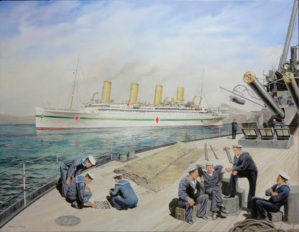 Большие проблемы появились с проливами, которые соединяют Средиземное море с Черным морем. В течение Первой Мировой войны была серьезная борьба, чтобы контролировать этот участок. Многие солдаты, получив ранения, должны были быть отправлены на кораблях-госпиталях обратно в Англию и Францию, но для этого нужны были большие корабли. Именно поэтому британское адмиралтейство собрало вместе два самых больших лайнера Кунарда, Мавританию и Аквитанию.