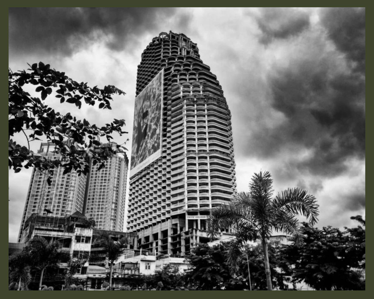 Этот заброшенный 49-этажный небоскреб с элементами греко-римской архитектуры находится на улице Чароен Крунг, рядом с рекой Чао Прайя. Здание возвышается над Бангкоком, как если бы оно было символом одного из худших финансовых кризисов, которые когда-либо переживал Таиланд, - азиатский финансовый кризис 1997 года.