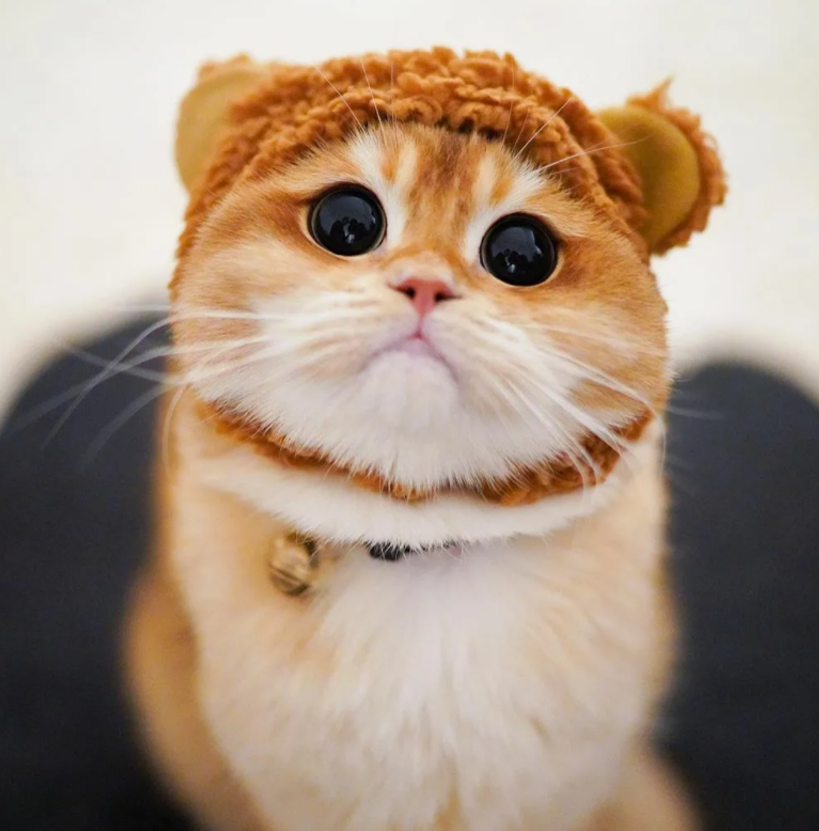 Рыжий котик в смешной шапочке